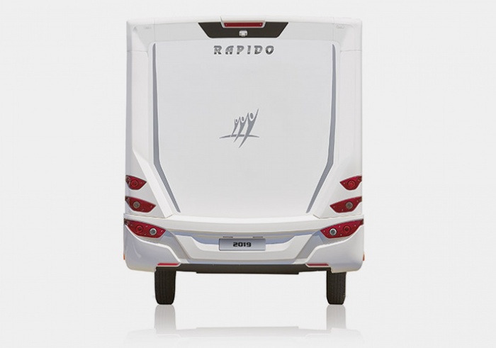 Desde su creación, la marca RAPIDO ha sido reconocida por la calidad de la construcción de sus vehículos y sus exteriores de alta gama. Las series 70F y DISTINCTION están provistas de una nueva parte trasera, mientras que todos los modelos (excepto vans) están equipados con nuevas trampillas con toma de 230 V, agua limpia imantada y nuevas puertas de garaje.